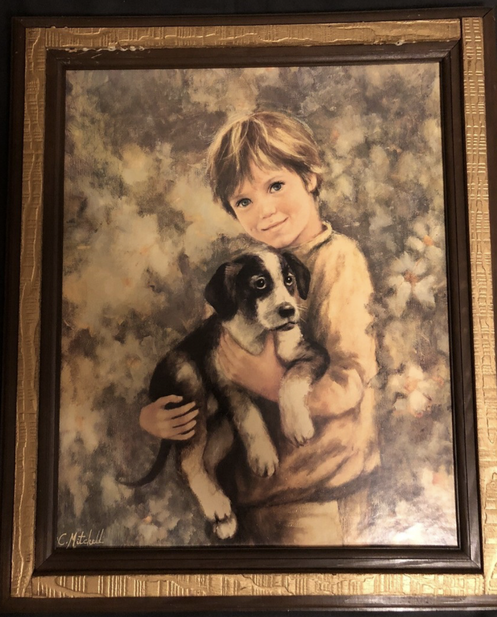 Boy With His Dog/Best Friend -“Companion” By C. Mitchell Vintage Framed Art