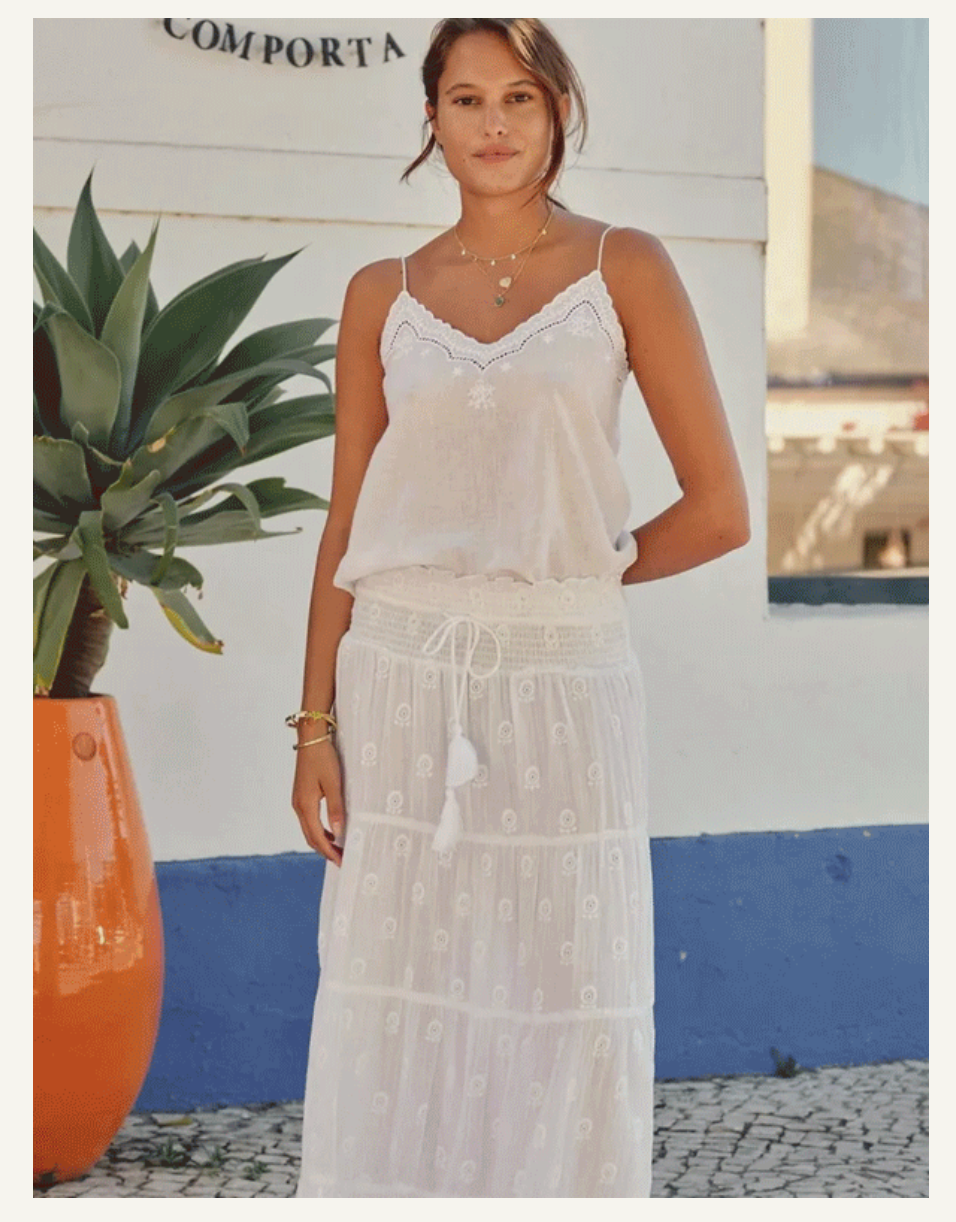 Think dreamy dresses, billowing blouses, flowy maxi skirts, and silk kaftans that move with you from morning coffee to golden hour dinners.
