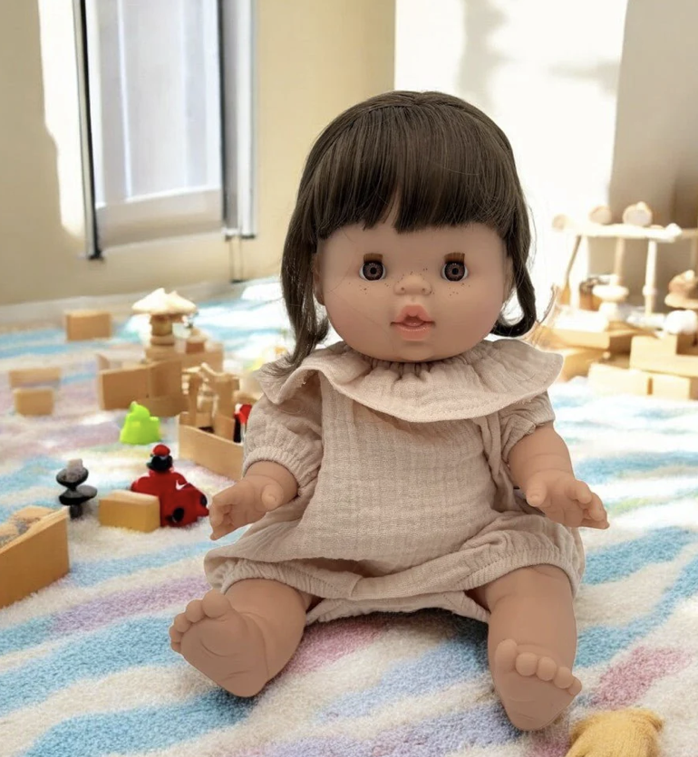 Minikane, a beloved French doll brand, creates beautifully crafted dolls that come in a wide range of skin tones, hair textures, facial features, and expressions. No single doll is positioned as the “default.” Instead, each one simply *is*—worthy, loved, and complete.